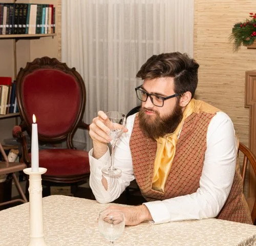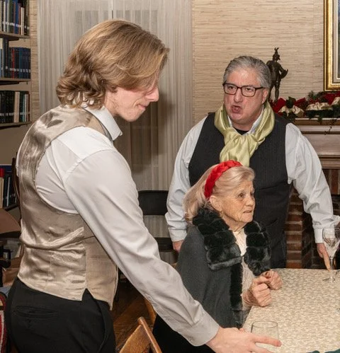 Bread & Wine Theatre Company’s production of Thornton Wilder’s The Long Christmas Dinner is clearly a labor of love. It is performed in the quaint setting of a literal family dining room in the historic Thomas Sappington House in Crestwood, Missouri (just outside of St. Louis). Seating only up to 40 audience members around the edges of the room and action, Director Owen Brown–founder of Bread & Wine–creates an evening of intimacy and inclusion from the moment audience members take their seats.